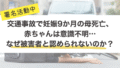 Uncategorized 交通事故で妊娠9か月の母死亡、赤ちゃんは意識不明…なぜ被害者と認められないのか?【署名活動】 まず初めにお願いがあります。この記事は、妊娠9か月で交通事故に遭い亡くなられた女性と、意識不明のまま生まれた赤ちゃんのことについて書いています。ご遺族は「赤ちゃんも被害者として認めてほしい」と署名活動を始められました。👉 (※署名ページUR... 2025.09.01 Uncategorized