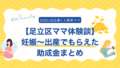 出産・育児 東京都足立区で妊娠〜出産までもらえた助成金まとめ【2024〜2025体験談】 こんにちは😊東京都足立区在住の新米ママです。今回は、私が 2024年6月〜2025年2月に妊娠・出産したときに実際にもらえた助成金 を、時系列でまとめてみました✨のん妊娠中から出産後まで、いろんな助成金や給付金があって「正直よく分からない!... 2025.09.04 出産・育児