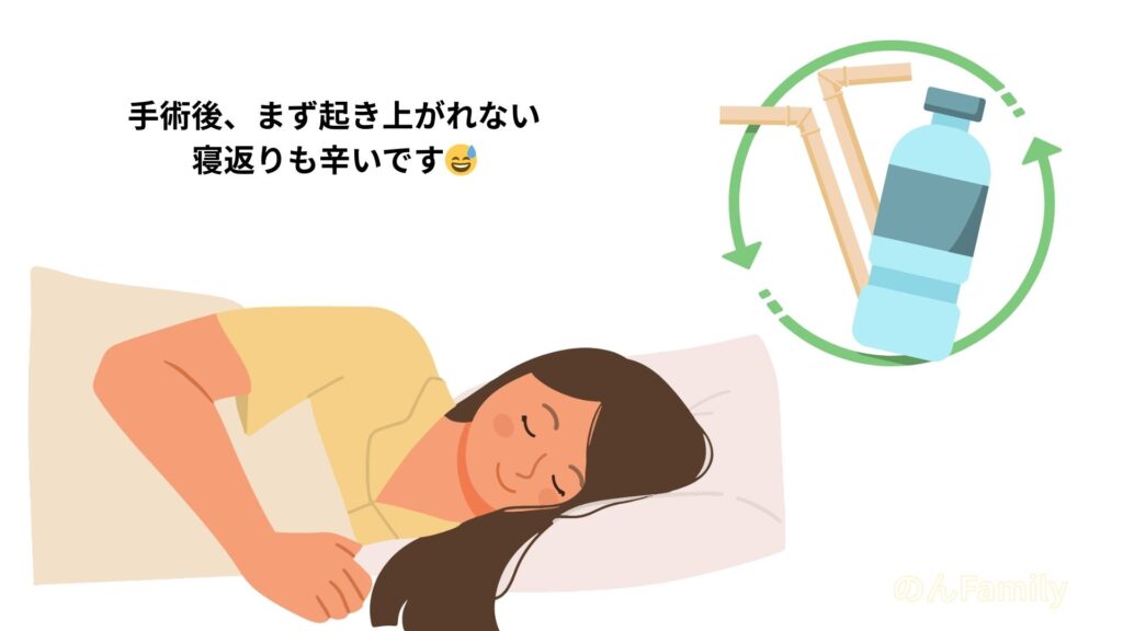 私自身も帝王切開で出産しましたが、起き上がれない・お腹の痛みが強い・水分が必要など、