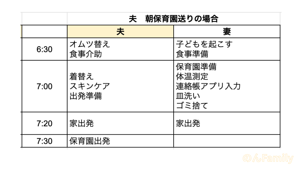 ◆我が家のスケジュールイメージ(夫婦で分担)